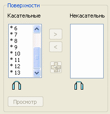 Ограничивающие линии пронумерованы в модели. Эти номера соответствуют номерам в списках Касательные и Некасательные: