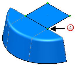 - щёлкните по любой граничной точке между двумя поверхностями, которые требуется соединить. Щёлкните мышью для создания соединяющей поверхности. Удалить соединяющую поверхность можно с помощью кнопки диалога