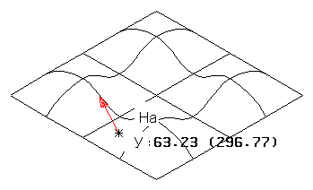По умолчанию измеряются только углы уклона в точках на кривых поверхности. Можно измерить уклон точек внутри участка поверхности, удерживая нажатой клавишу Shift. Уклон измеряется от активной плоскости до нормали к точке поверхности под курсором.