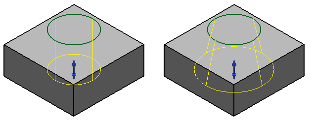 При создании сквозных бобышек убедитесь, что высота выходит за пределы основания тела.