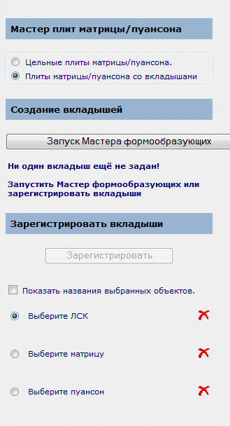 В верхней части окна браузера откроется Мастер плит матрицы/пуансона: