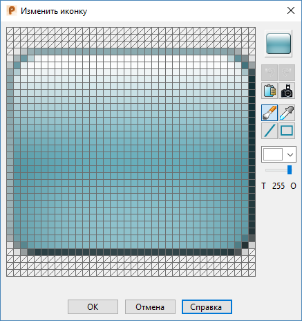 Выбранная кнопка отображается в виде растрового изображения, каждый пиксел которого можно отредактировать.