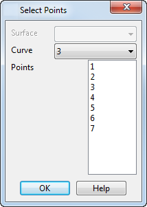 - При выборе другой поверхности или кривой из селектора PowerShape запоминает выбранные точки предыдущих поверхностей.