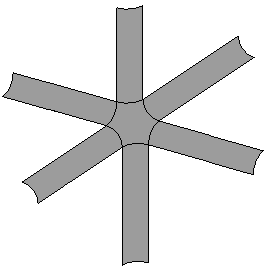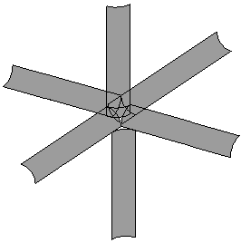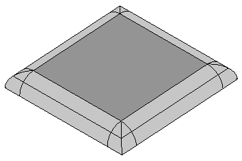 - N-угольный угол - в области, где встречаются несколько скруглений, эта опция обрезает скругления относительно друг друга (формируя n-стороннее отверстие) и автоматически заполняет это отверстие гладкой поверхностью.