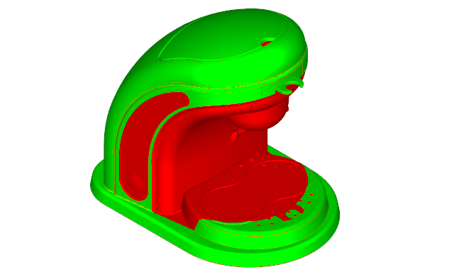 Производится закраска соответствующих областей модели в контексте выбранной рабочей плоскости. Области, доступные для обработки, окрашиваются зеленым цветом. Все остальные области отображаются красным.