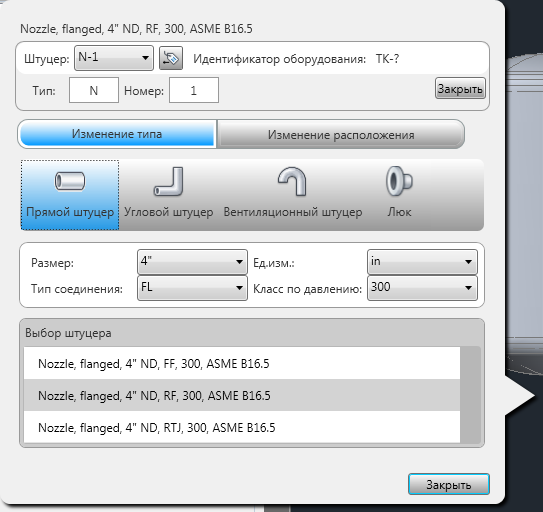 Используется для отображения списка доступных штуцеров в соответствии с заданными фильтрами. Выберите штуцер, который необходимо изменить или добавить.
