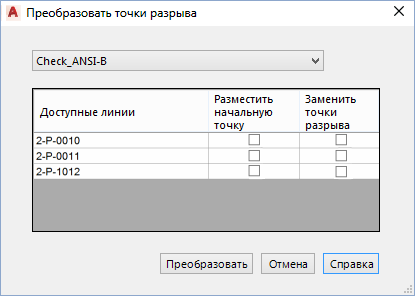 - Щелкните "Преобразовать точки разрыва". Появляется диалоговое окно "Преобразовать точки разрыва".