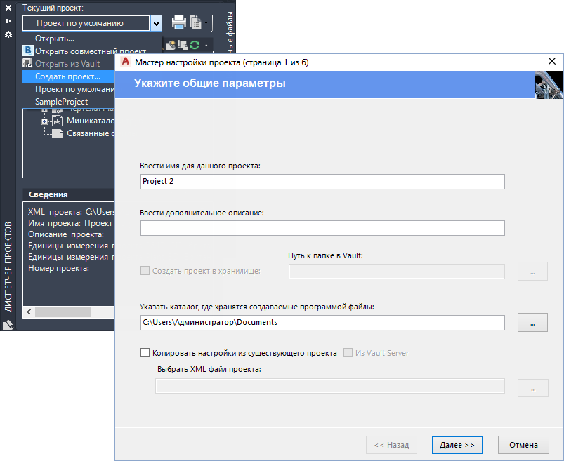 При первом запуске программы в качестве текущего проекта устанавливается проект по умолчанию. Затем можно изменить этот проект или создать новый, в зависимости от требований.