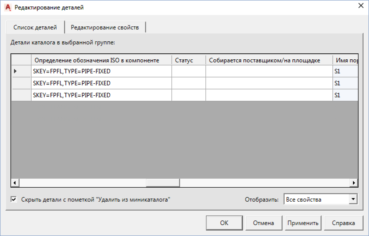 Для задания свойств "Использовать фиксированную длину" и "Фиксированная длина" в миникаталоге трубопроводов проекта используется редактор миникаталогов. Необходимо задать свойства фиксированной длины для активации новых функций трассировки трубопроводов фиксированной длины.