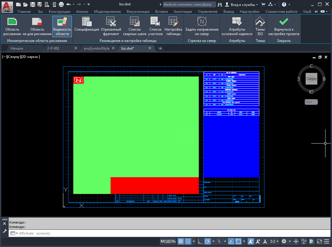 Область чертежа, включая настройку общей области печати и стрелки северного направления