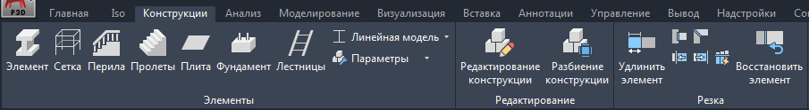 Вкладка "Конструкции" является частью рабочего пространства "3D трубопровод".