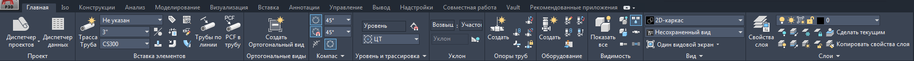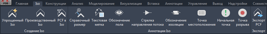 Вкладка "ISO" является частью рабочего пространства "3D трубопровод".