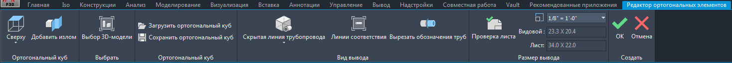 Контекстная вкладка "Ортогональный вид" является частью рабочего пространства "3D трубопровод".