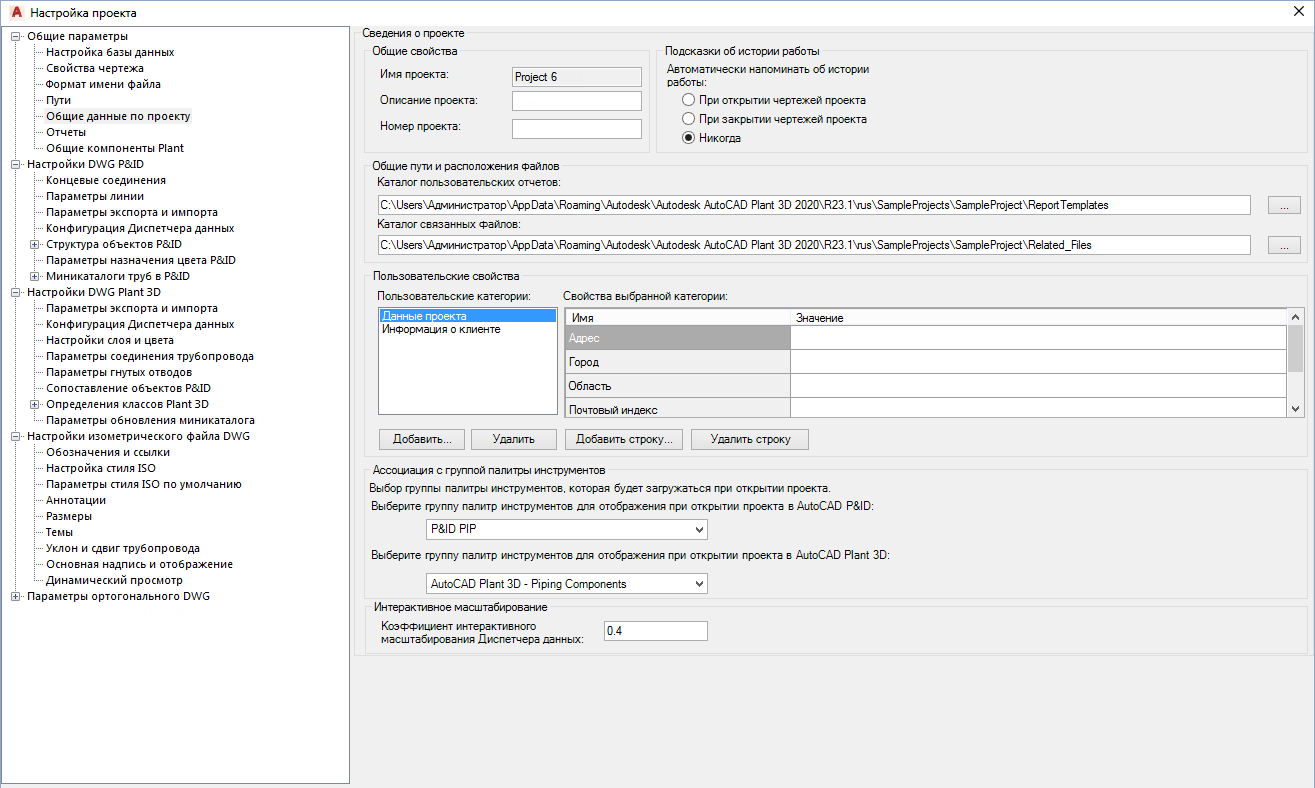 В структуре "Настройка проекта" разверните узел "Общие параметры". Щелкните "Сведения о проекте".