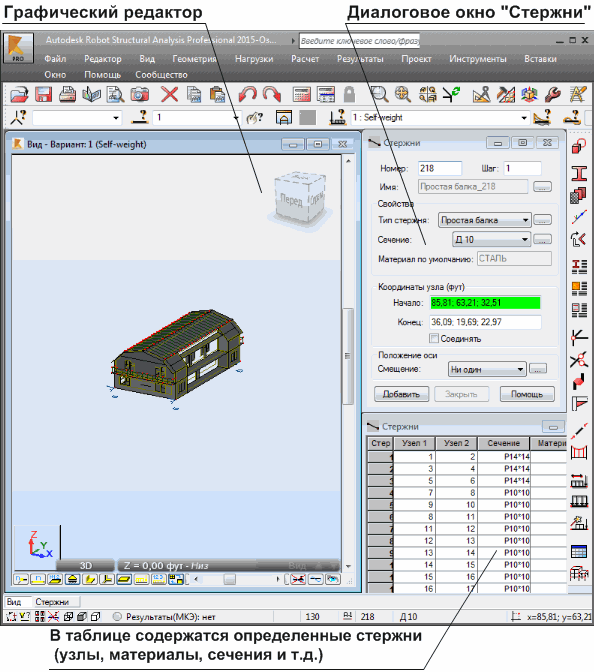 Пример использования компоновок: после выбора компоновки "Стержни" открывается эта система экранов. Обратите внимание на то, что для лучшей читаемости изображения диалоговое окно "Инспектор объектов" на нем не показано.