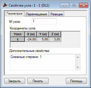- номер узла и координаты в табличной форме (координаты узла не редактируются);
