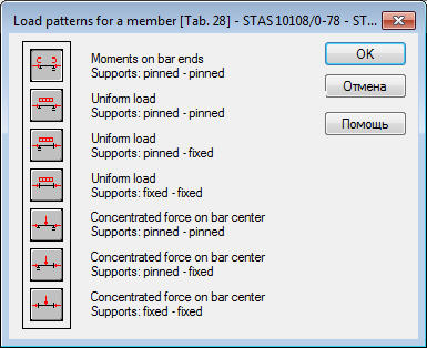 Параметры в этом диалоговом окне используются для определения шаблона распределения изгибающих моментов по длине рассчитываемого элемента. Эта информация используется для проверки стабильности элементов подлежащих одновременному воздействию сдавливающей силы и сгибающих моментов (см. п. 8.2).