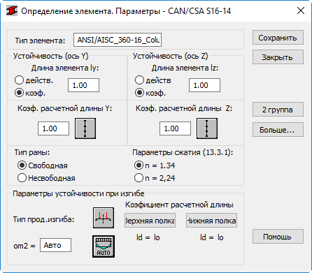 В поле Параметры поперечной потери устойчивости также можно задать коэффициент om2.