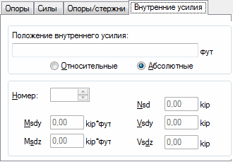 Для задания нового типа нагрузки нужно в поле Нагрузки выбрать функцию Вручную. С этого момента пользователь может задавать произвольные сосредоточенные силы, задавать ребра в произвольно выбранных местах и задавать внутренние силы, соответствующие указанной нагрузке. Значения внутренних сил должны быть заданы на вкладке "Внутренние усилия".