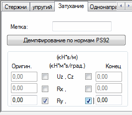 Определение снятия связи с демпфированием (затуханием) заключается в определении метки снятия связи, выборе фиксированных степеней свободы в начале и конце стержневого элемента и задании коэффициентов демпфирования CX, CY, CZ, CRX, CRY, CRZ (это компоненты матрицы демпфирования C). Количество доступных коэффициентов демпфирования зависит от выбранного типа конструкции (плоская рама, пространственная ферма, плита и т. д.). Определенная таким образом величина демпфирования учитывается только при расчете колебаний.