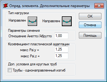 Эта опция используется для описания дополнительных параметров типа стальных стержней, назначаемых нормами. Опция активизируется нажатием на кнопку "Больше", расположенную в диалоговом окне "Определение элемента. Параметры".
