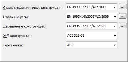 Если выбран Еврокода , справа от списка выбора отображается дополнительная кнопка (...), при нажатии на которую открывается диалоговое окно Нормативные коэффициенты для редактирования коэффициентов материала для модулей норм.