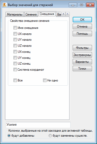 Перейдите на вкладку "Смещения" в диалоговом окне Колонны, чтобы выбрать значения смещения для отображения.