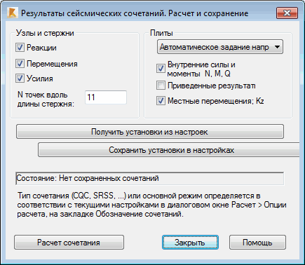 2. сохранение по требованию, без необходимости повторного запуска сейсмического расчета, активизируемого с помощью опции Расчет > Сохранить результаты сейсмического сочетания.