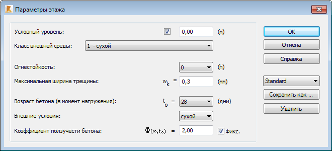 - Коэффициент ползучести бетона: параметр, используемый для автоматического расчета коэффициента ползучести.