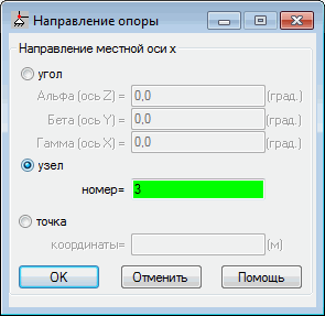 Опция диалогового окна служит для определения опоры в произвольном направлении. Для определения направления оси x опоры можно использовать один из нижеприведенных методов: