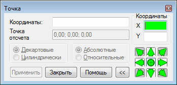 При нажатии кнопки >> диалоговое окно расширяется (нажатие кнопки << возвращает окну его исходный размер). В правой части окна имеются опции, которые позволяют определить координаты точки или расстояние от базисной точки.