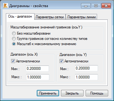 В нижней части диалогового окна пользователь может выбрать вид масштаба для графика: