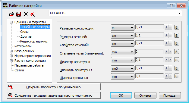 - сохраняются текущие настройки параметров рабочих настройках. Эти величины будут использоваться для каждого нового проекта.