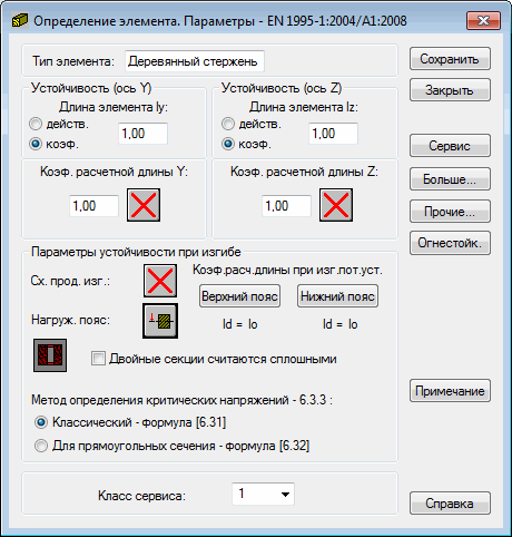 Определение элемента. Параметры (EN 1995-1:2004/A2:2014)