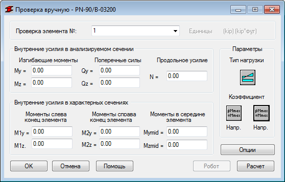 4. В окне Параметры выберите Вид нагрузки, примененной к проверяемому элементу по направлению на оси Y или Z.