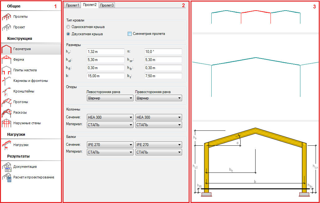 - В правой части окно графического просмотра разделено на три области с определенными элементами конструкции рамы.