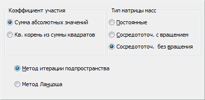 В этом диалоговом окне выбираются следующие параметры модального расчета: