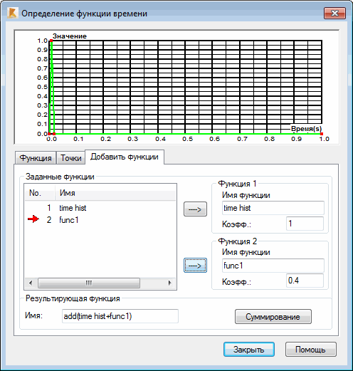 Прим.: Значение результирующей функции интерполируется в точках с общей абсциссой. Каждая из определенных функций может быть умножена на коэффициент, заданный пользователем.