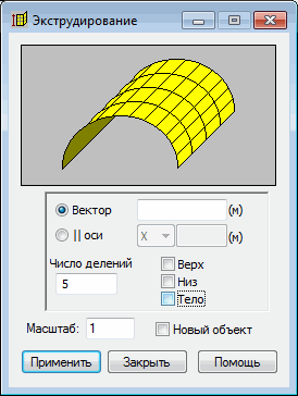 Эта опция используется для создания простых плоских или подобных твердому телу элементов при помощи экструдирования ранее определенных двумерных объектов.