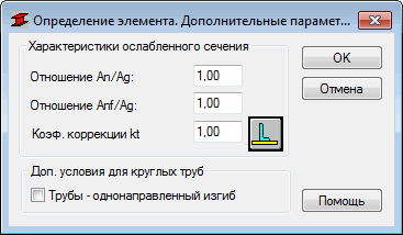 Этот параметр используется для задания дополнительных параметров норм для определенного типа стальных элементов. Для доступа к этой опции нажимают на кнопку Больше в диалоговом окне Определение элемента. Параметры