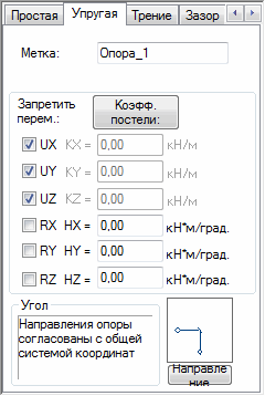 В случае упругой опоры определяются не только заблокированные степени свободы, но и коэффициенты упругости в соответствующих направлениях: