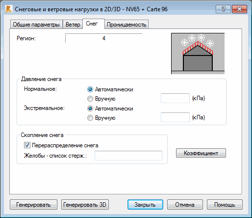 - Автоматически - автоматическое определение давления снега по параметрам расположения конструкции.