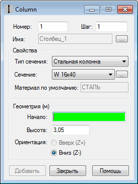 материал по умолчанию (это поле не доступно; оно показывает материал, заданный для выбранного сечения колонны).