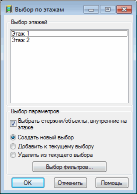 В нижней части диалогового окна могут быть определены параметры выбора с помощью этажей конструкции: