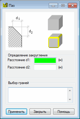- в полях редактирования Расстояние d1 и Расстояние d2 определить расстояния между линиями среза плоскостей (которые соединяют грани) и гранями;