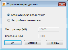 Это диалоговое окно используются для указания максимально необходимого места на диске для сохранения буферов с результатами. По умолчанию, опция Автоматическая поддержка включена (но тогда не все поля редактирования доступны).