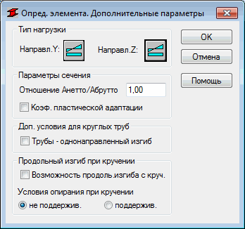 - Тип нагрузки в направлениях Y и Z