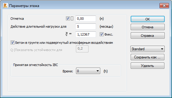 Прим.: Содержимое этого окна зависит от выбранных железобетонных норм. Для других норм внешний вид окна может отличаться от показанного выше.