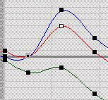 如果高亮显示的曲线是多重曲线控制器的一部分,将在您单击的时间位置向每个曲线中插入顶点。例如,如果使用的是“Bezier 位置”控制器,则将关键点添加到“位置”轨迹的红色 X 曲线上会同时将关键点插入到绿色 Y 曲线和蓝色 Z 曲线上。下图描述了这种情况: