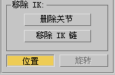 使用此组中的选项,可以添加或删除任何关节的“位置”或“旋转”末端效应器。此选项仅对当前选定的关节产生影响。末端效应器 是 IK 链产生解决方案的跟随对象。末端效应器有下面两种类型:位置和旋转。这两种末端效应器在关节处都显示为三条相交的蓝线。当选择带有这两种末端效应器中的一种或都带有这两种末端效应器的关节,并执行与末端效应器类型相匹配的变换时,只会对末端效应器本身进行变换。然后链中的对象就会使用 IK 来跟随并创建 IK 解决方案。